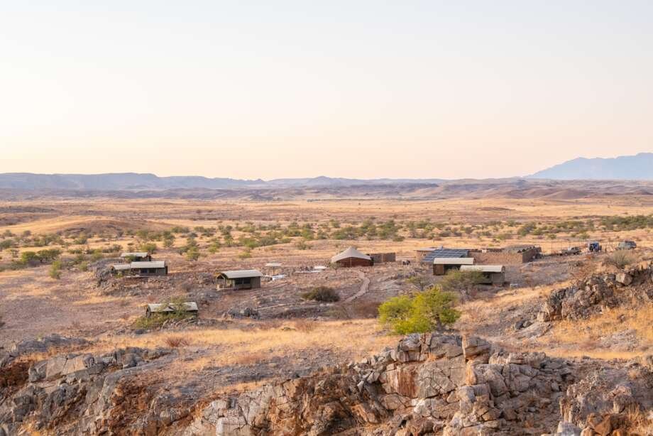 Au cœur du Damaraland, dans la concession de 190 km2 de Doros Joint Management Area. Le paysage aride se caractérise par de vastes collines aux formations rocheuses bizarres et des dunes ocre. Durant toute l’année, de nombreuses sources naturelles approvisionnent en eau la faune adaptée au désert. C'est ainsi qu’on y trouve les rares éléphants du désert et rhinocéros noirs, mais aussi des kudus, des girafes, des springboks, des antilopes oryx, des zèbres de montagne, des oréotragues et des prédateurs comme les léopards, les guépards et les hyènes. Arrivée en voiture ou en petit avion à la piste d’aviation d'Onduli. Ensuite, trajet en pleine nature d’env. 1 ¼ d'heure jusqu'au camp.