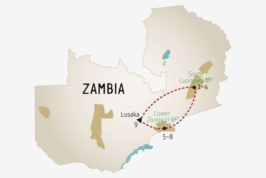 1ᴱᴿ JOUR: Lusaka–parc national de South Luangwa. A l’arrivée à Lusaka, vos guides francophones vous accueillent et vous montez à bord d'un petit avion. Vous vous envolez pour la principale région de safari de Zambie, le célèbre parc national de South Luangwa. Le trajet vers votre prochain campement vous mène à travers des villages colorés et des terres agricoles, ainsi qu'à travers la brousse. Pendant le safari noctune, soyez à l'affût des léopards, pour lesquels la région de South Luangwa est célèbre. Nuitée au Flatdogs Camp ou sim. (PdS)