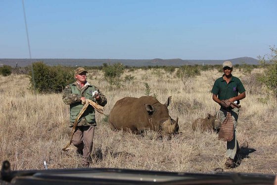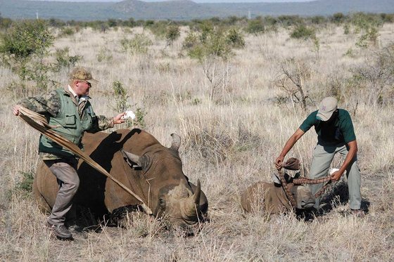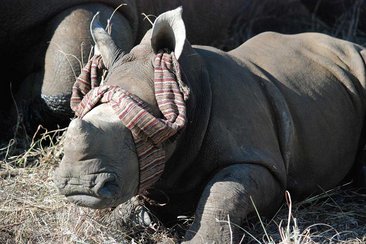 Das Jungtier war zu diesem Zeitpunkt noch nicht betäubt, aber wich keine Sekunde von seiner Mutter und war daher ein leichter Fang. Nachdem der Helikopter gelandet war, näherten sich der Arzt und seine Helfer den beiden Nashörner und verdeckten den Tieren die Augen mit Tüchern.