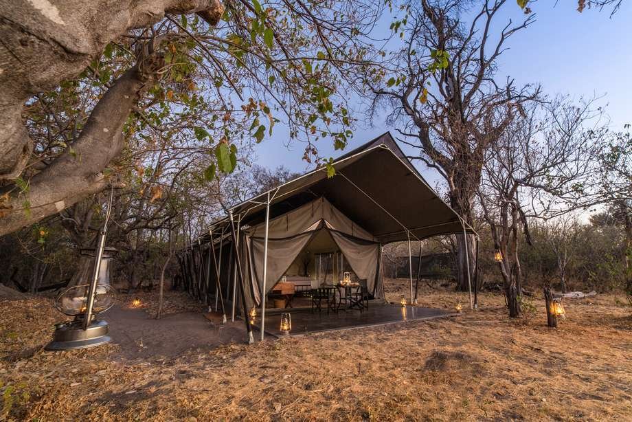 Das Camp ist mit viel Liebe zum Detail eingerichtet und liegt am Ufer des Khwai Flusses. Die geschmackvolle Einrichtung erinnert an ein Safaricamp der 50er Jahre. Die modernen, afrikanischen Akzente verleihen der Unterkunft ihren besonderen Charme. Am Swimmingpool können Sie nicht nur ein Buch aus der Bibliothek lesen, er lädt auch zur Abkühlung an heissen Tagen ein. Die vorzüglichen Speisen werden im Speisezelt oder unter dem afrikanischen Sternenzelt serviert.
