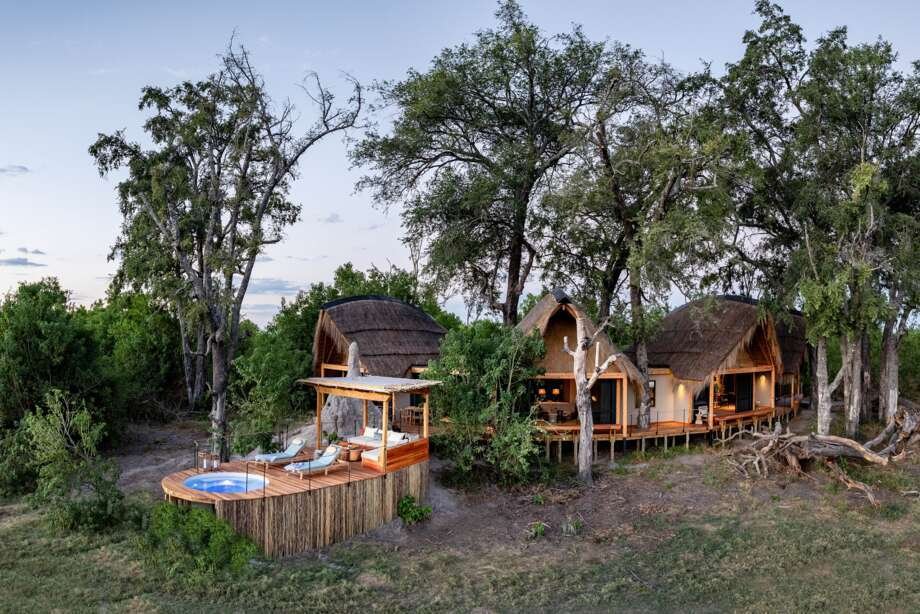 Land-Camp. Am Ufer des Gomoti Flusses im Südosten des Moremi Wildreservats gelegen. Moremi ist bekannt für seine hohe Dichte an Raubtieren darunter Leoparden, Löwen und Wildhunde.