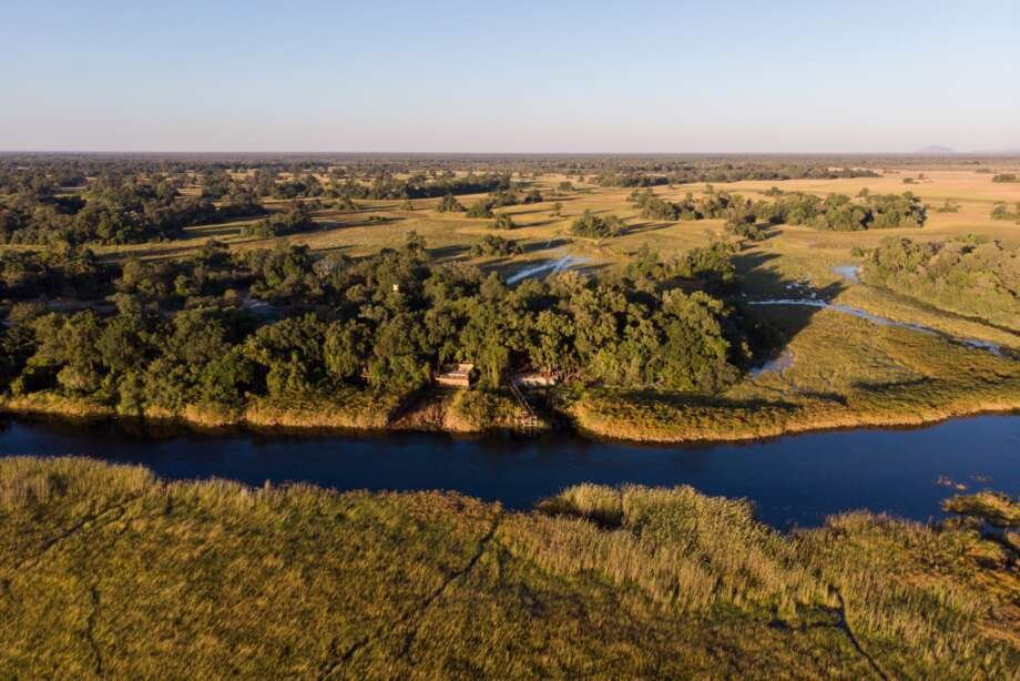 Wasser-/Land-Camp. Die Unterkunft befindet sich auf einer privaten Insel inmitten des sogenannten «Pfannenstils» des Okavango. Der Fluss trägt hier noch ganzjährig reichlich Wasser, bevor er sich weiter südlich komplett in der Wüste entleert. Idealer Ausgangspunkt, um das UNESCO Weltkulturerbe der Tsodilo Berge mit den faszinierenden Felsmalereien zu besuchen.
