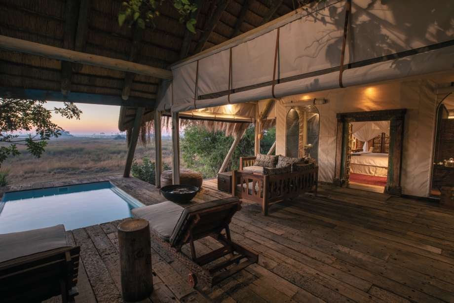 Land-/Wasser-Camp (saisonal). Am Selinda Spillway, einem Wasserweg, der zwischen dem Okavango Delta und dem Linyanti Gebiet verläuft. Das riesige, private Konzessionsgebiet ist unter anderem für regelmässige Sichtungen der seltenen Wildhunde bekannt und das imposante Selinda Löwen-Rudel wurde kürzlich von National Geographic in «Birth of a Pride» verfilmt.