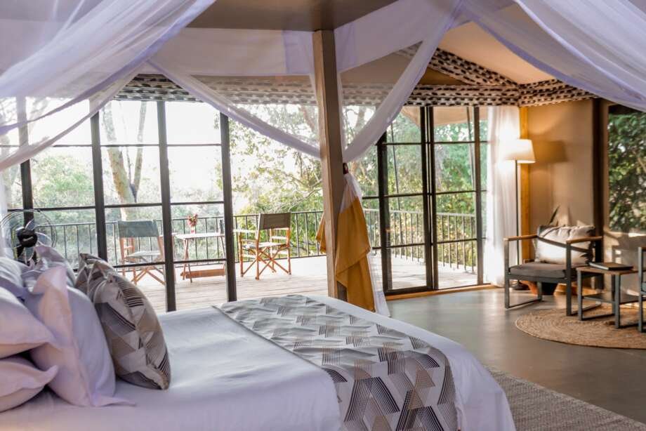 Zimmer: 16. Die geräumigen Zelte sind mit einer Glasfront ausgestattet und dem Fluss zugewandt.