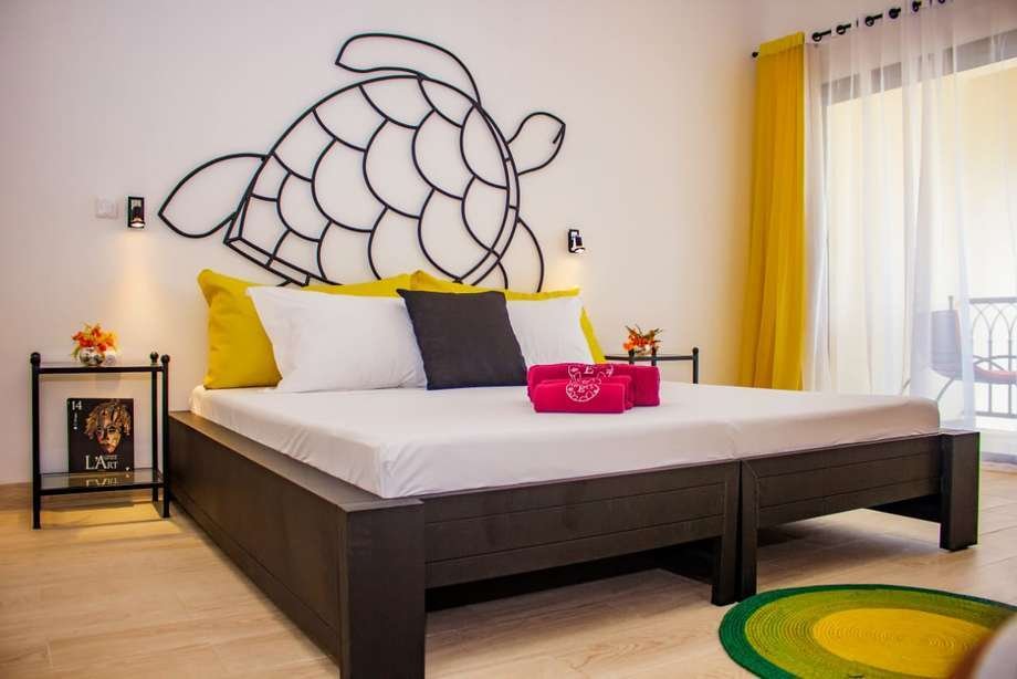 Die Zimmer (32 m²) sind alle zum Meer ausgerichtet und die Lage ermöglicht das Bewundern des Sonnenuntergangs vom Balkon oder der Terrasse aus. Sie verfügen über Bad/Dusche, TV, Klimaanlage, Safe und Minibar. WiFi.