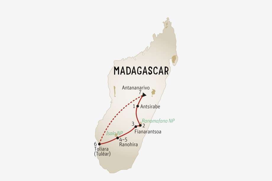 | Gültigkeit der Preise: 1.12.24–30.11.25 ¦ Zuschlag deutsch oder italienisch sprechender Reiseleiter: CHF 183.– pro Person. Flugtransfer Toliara–Antananarivo: ab CHF 375.– pro Person. | |