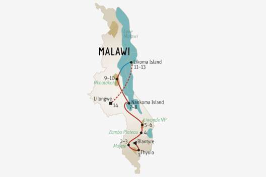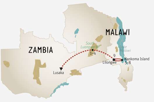 «Malawi – The Warm Heart of Africa» – mit diesem selbstgewählten Slogan heisst der kleine Staat seine Besucher willkommen. Ein Glanzpunkt ist der Nyika National Park ganz im Norden. Der Malawi-See ist ein Paradies für Wassersportler und Schnorchler. Eine Reihe kleiner Wildparks, über das Land verstreut, bieten Safari-Möglichkeiten.