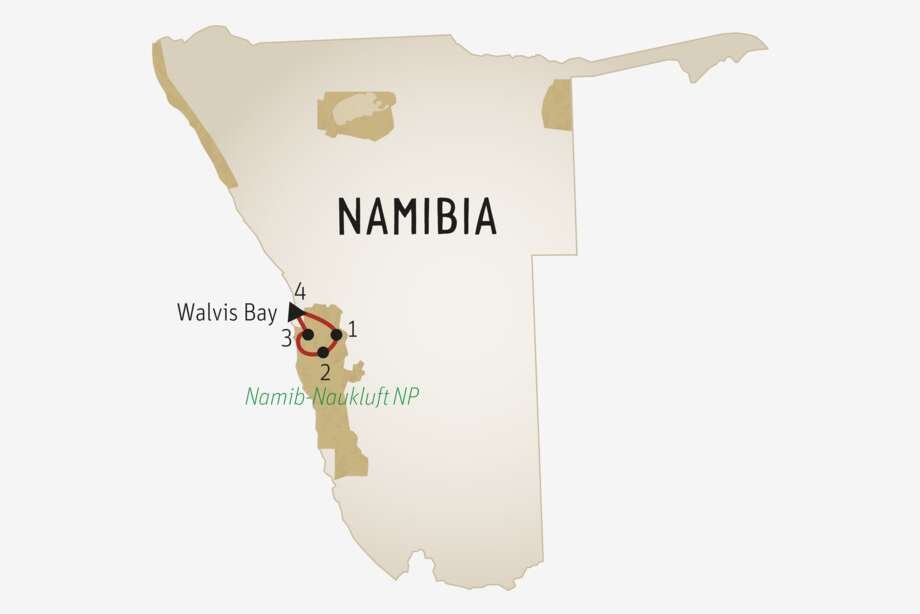 4. TAG: Namib-Naukluft Nationalpark–Walvis Bay. (± 80–120 km). Die heutige Tagesetappe wird auch gerne Achterbahnfahrt genannt. Die Unterflächen sind oft rutschig und höchste Konzentration ist gefragt. Gegen Nachmittag endet Ihre Reise in Walvis Bay. (F)