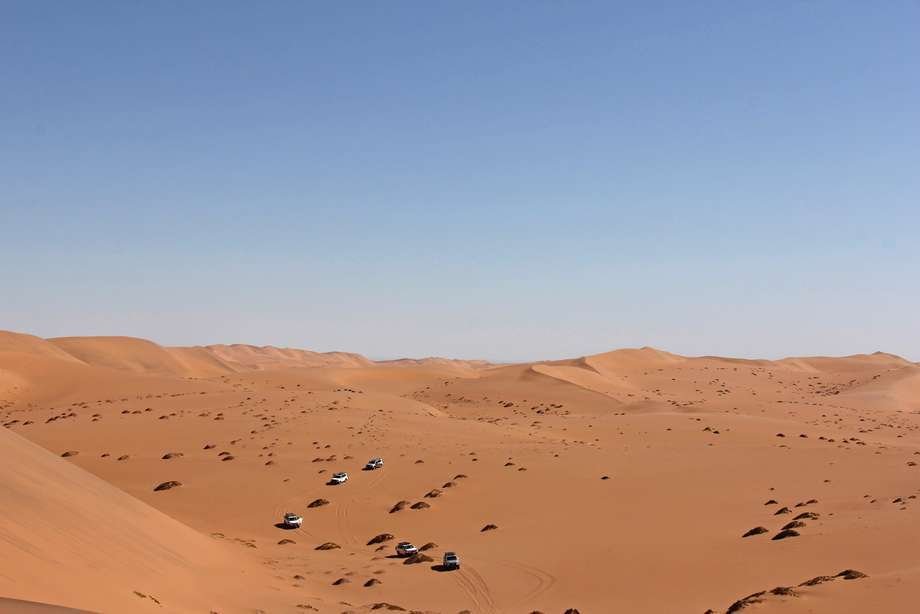 1. TAG: Walvis Bay–Namib-Naukluft Nationalpark. (± 80–120 km). Diese Abenteuerreise beginnt ca. 30 Fahrminuten südlich von Walvis Bay in Rooibank. Hier treffen Sie auf Ihren Guide, der Sie die nächsten Tage begleitet. Gemeinsam erklimmen Sie die fast unüberwindbaren Dünen. Per Funk stehen Sie mit Ihrem Guide in Kontakt. Er gibt Ihnen detaillierte Anweisungen, wie Sie am besten die Dünen hoch und wieder runter kommen. Schon bald verlassen Sie die Zivilisation. Rechts und links sehen Sie nur noch imposante Dünen und Sandfelder. Das heutige Ziel heisst «Linear Dune Belt». Der Wind hat die Dünen hier so geformt, dass sie links und rechts fast die exakt gleiche Form haben. Gegen den späteren Nachmittag erreichen Sie Ihr Camp. Wenn Sie wünschen können Sie in Ihrem Dachzelt übernachten, wir empfehlen Ihnen aber unter freiem Himmel zu schlafen. Das Sternenzelt Afrikas ist in der Namib Wüste überragend. Für die Gruppe steht ein Busch-WC sowie Dusche zur Verfügung. Übernachtung Camping (A)