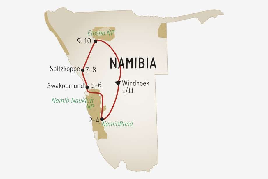 1. TAG: Windhoek. Individuelle Anreise nach Windhoek. Um 14:00 Uhr startet die geführte Rundreise mit Ihrer englisch sprechenden Reiseleitung und den anderen Reiseteilnehmern mit einem «Meet and Greet» und einer Stadtrundfahrt. Den Tag lassen Sie gemeinsam im stadtbekannten «Joe’s Beerhouse» ausklingen. Übernachtung Adventure Camping Bronze Hotel Safari o. ä.