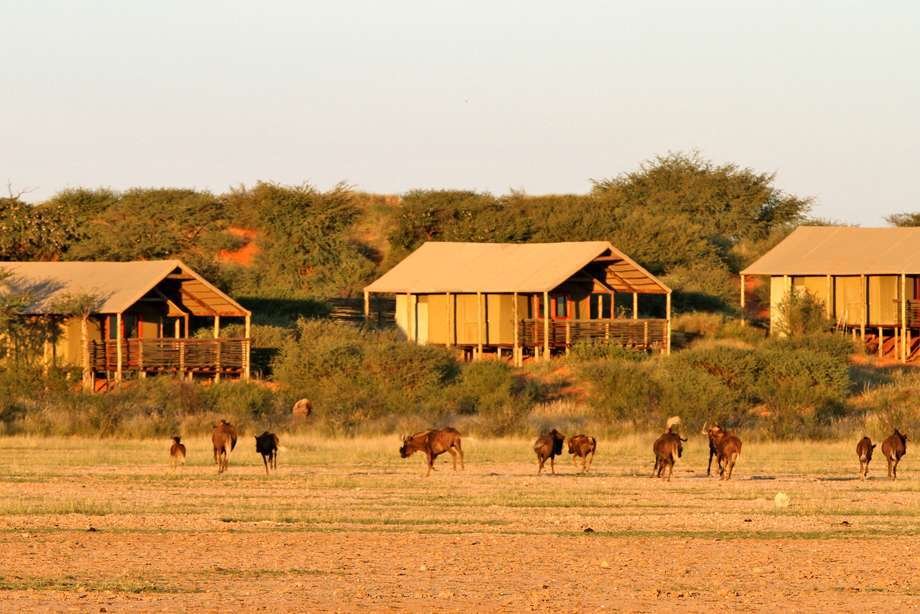 Direkt an einer Salzpfanne gelegen im privaten Wildreservat im Herzen der Kalahari. Rote Dünen umgeben die Lodge.