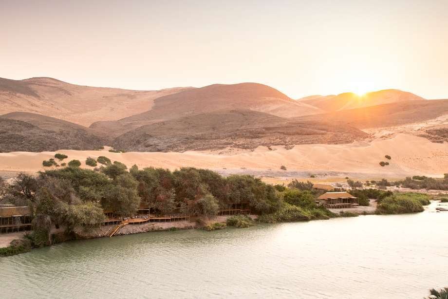 Das exklusive Serra Cafema Camp befindet sich im äussersten nordwestlichen Teil Namibias. Diese einzigartige Oase entlang des Kunene Flusses ist von zerklüfteten, goldgelben Bergen und Sanddünen umgeben. Wer nach einem eleganten «hideaway» fernab der Zivilisation sucht, ist im Serra Cafema genau richtig. Zugang nur mit Kleinflugzeug und dann Transfer mit dem Jeep zur Lodge.