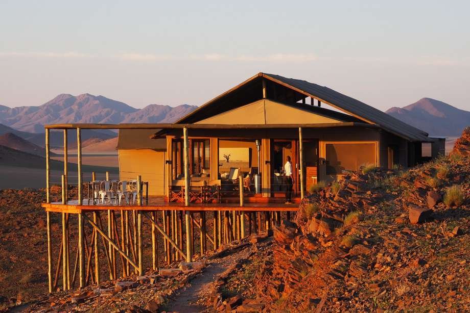Nur schon die Anreise ist ein Augenschmaus, der seinesgleichen sucht. In das Camp führt Sie eine der schönsten Strassen Namibias. Das Camp liegt inmitten eines 330 km² grossen Naturreservat. Eine unentdeckte Landschaft mit pfirsichfarbenen Sanddünen, perfekt geformten Bergen und Steppen umgeben das Camp. Da es in der Nacht kaum Lichtverschmutzung gibt, ist der Sternenhimmel besonders klar. Hier fühlt man sich als sei man der einzige Mensch auf der Welt.