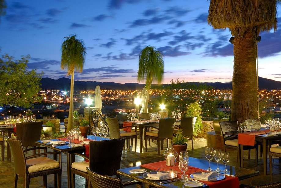 In dem romantischen Burghotel vereint sich der europäische Charme des 19. Jahrhunderts mit modernem Komfort des 21. Jahrhunderts. Gourmetrestaurant und Gartenterrasse mit Blick auf Windhoek, Weinkeller, Swimmingpool. WiFi.