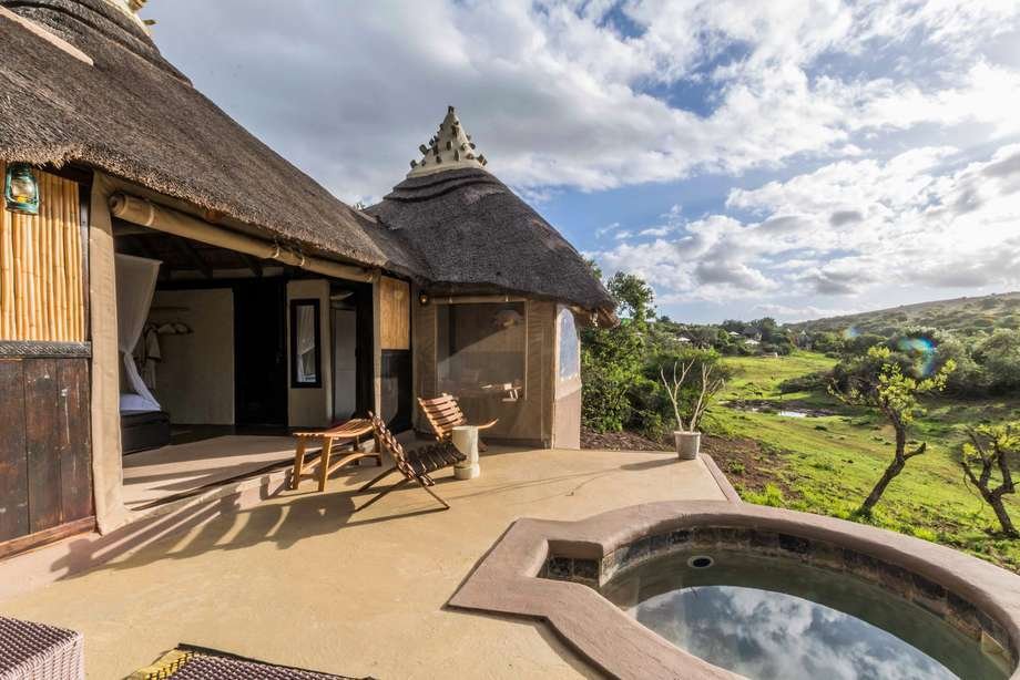 Das romantische HillsNek Safari Camp (****) liegt an einem Hang über dem Bushman's Fluss und garantiert spektakuläre Blicke ins Reservat. Das Hauptgebäude befindet sich auf einer grossen Holzplattform und beherbergt den Speisebereich, die Bar und eine gemütliche Lounge. Hier finden Sie ebenfalls die Boma und den Swimmingpool, den die Elefanten gerne nutzen, ihren Durst zu stillen. WiFi.