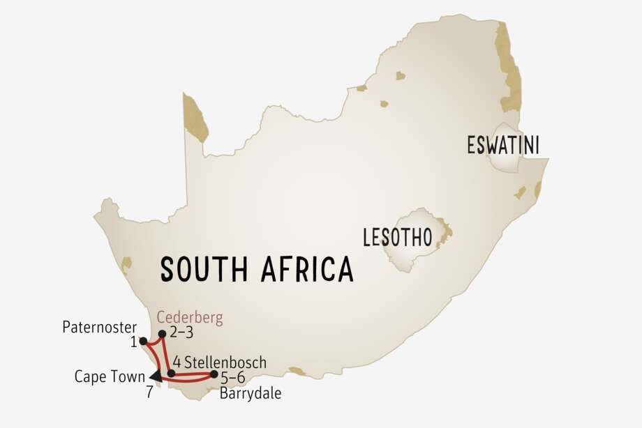 2. TAG: Paternoster−Cederberge. (± 270 km). Nachdem Frühstück mit Blick über den Ozean fahren Sie ins Landesinnere in die Cederberge Region. Die Landschaft ist hügelig und immer wieder erstrecken sich neue Berge vor Ihnen. Ein Naturschauspiel, das Sie erwartet. Wir empfehlen Ihnen heute eine kurze Wanderung zu unternehmen. Übernachtung Bronze Kagga Kamma o. ä. (F) Silver Cederberg Ridge o. ä. (FA) Gold Bushmans Kloof o. ä. (FMA)