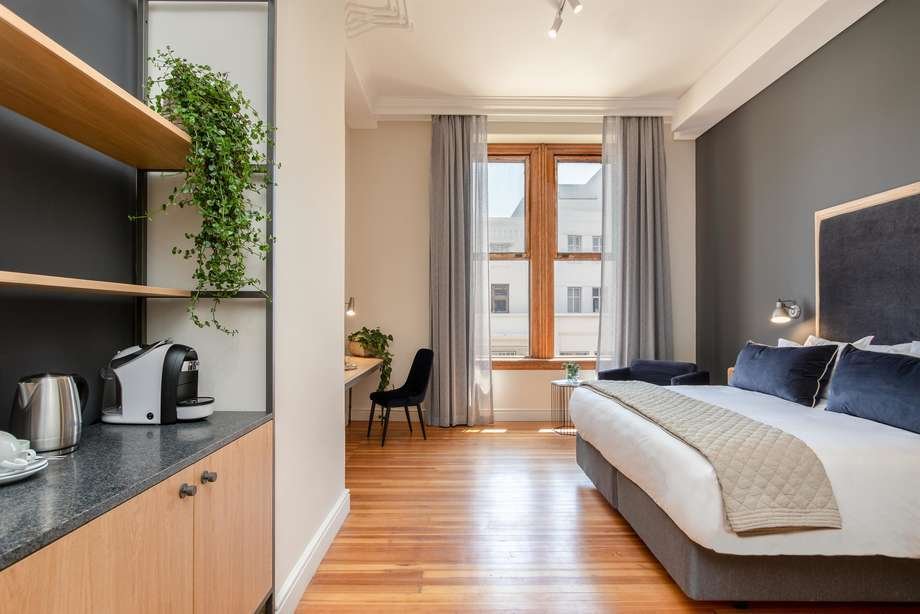 In einem denkmalgeschützten Bank-Gebäude von 1902. Das Interieur vereint viktorianische Architektur und modernes Design. Mit dem Aufzug fährt man in den 8. Stock und wird in der freundlichen Réception willkommen geheissen. Das Hotel verfügt über ein Bistro-Restaurant, eine Bar und eine Dachterrasse. WiFi.