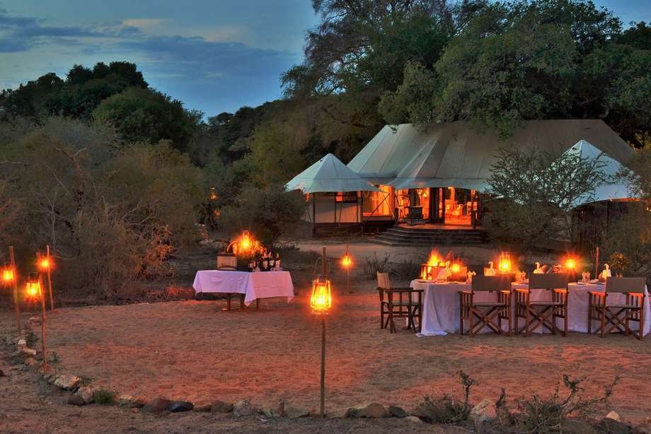 Das Hamilton's Tented Camp (****/*) besticht durch sein afrikanisches Flair und seine kompromisslose Eleganz und bleibt dem romantischen Stil aus vergangenen Zeiten treu. Hauptzelt mit Speisebereich, Swimmingpool, Lounge und Bar mit grosszügiger Terrasse mit Blick auf das Wasserloch.