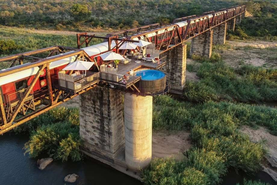 Die einzigartige Lodge befindet sich in einem umgebauten Zug, der dauerhaft auf der historischen Selati-Brücke über dem Sabie Fluss stationiert ist. Der Flughafen Skukuza liegt 5 km entfernt.