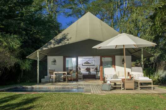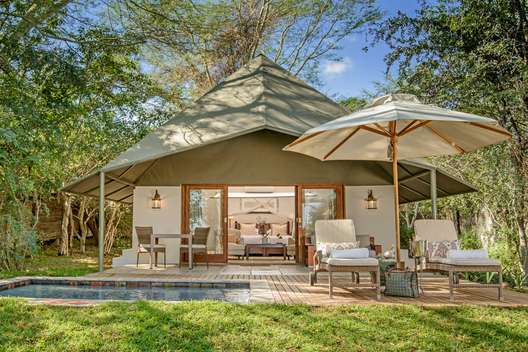 Die Unterkünfte in dem privaten Reservat lassen keine Wünsche offen und bieten Ihnen Safari-Feeling deluxe.