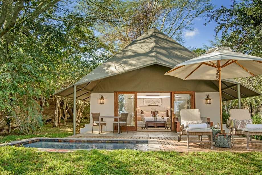 Das luxuriöse Zeltcamp im reizvollen und tierreichen Sabi Sand Gebiet versprüht eine idyllische Atmosphäre und empfängt Sie mit einer liebenswerten Gastfreundschaft. Unaufdringlicher, professioneller Service und hervorragende Safaris zeichnen das Camp aus. Entspannen Sie zwischen den Pirschfahrten am Swimmingpool mit wunderbarer Sicht auf den grünen Garten und das Wasserloch oder geniessen Sie einen erfrischenden Cocktail an der Bar. Das köstliche Abendessen wird Ihnen entweder im Speisesaal oder unter dem bezaubernden Sternenhimmel Afrikas, um ein flackerndes Feuer in der Boma serviert. Weiter verfügt die Lodge über eine Lounge, einen Souvenirshop, eine Bibliothek, einen Spa, ein kleiner Gym sowie einen Weinkeller mit erlesenen südafrikanischen Weinen.