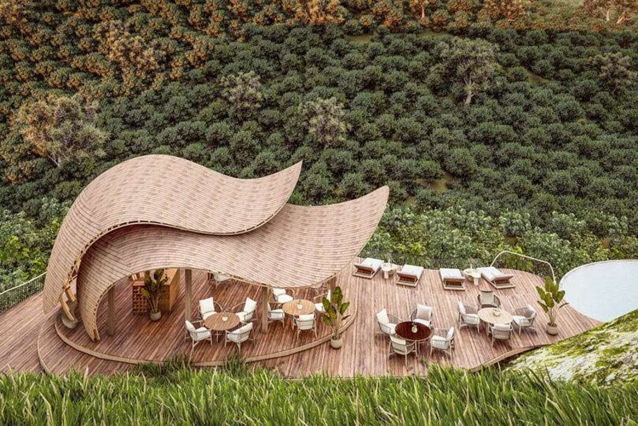 Die Architektur, inspiriert von den organischen Formen der Natur, nutzt nachhaltig gewonnenen Bambus und fügt sich harmonisch in die Umgebung ein. Zur Entspannung laden die Hauptlodge mit Lounge, Bar und Bibliothek sowie der Swimmingpool mit Panoramablick ein. Spa-Behandlungen werden direkt in den Suiten vorgenommen. WiFi.