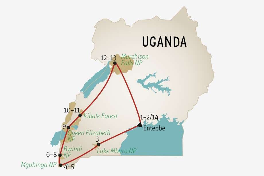 13. TAG: Murchison Falls Nationalpark. Morgens fahren Sie in den Park und spüren die hier heimische Tierwelt auf. Nach dem Mittagessen besuchen Sie die Wasserfälle. Diese beeindruckenden Wasserfälle entstehen, wenn der Nil durch eine enge Felsspalte von nur etwa 7 Metern Breite stürzt. Übernachtung Bronze und Silver Murchison River Lodge o. ä. (FMA) Gold Nile Safari Lodge o. ä. (FMA)