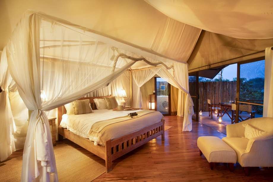 Die geräumigen und komfortablen Zelte stehen auf Stelzen und sind mit Ventilator, Safe und einer Sitzecke ausgestattet. Im Badezimmer steht eine viktorianische Badewanne und zusätzlich gibt es eine Aussendusche. Der Planschpool auf der Terrasse ist der perfekte Ort, um zwischen den Aktivitäten zu entspannen. Kinder ab 12 Jahren.