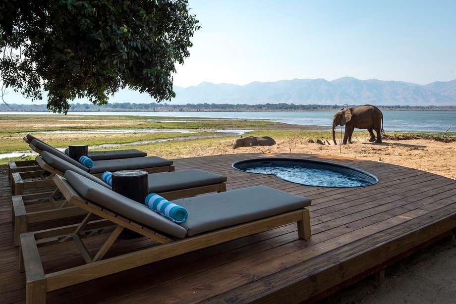 In einem weitläufigen privaten Konzessionsgebiet, an der westlichen Grenze des Mana Pools Nationalparks und am Ufer des mächtigen Zambezi Flusses. Die Kulisse des Höhenzugs im gegenüberliegenden Lower Zambezi Nationalpark in Zambia rundet die einzigartige Atmosphäre ab.