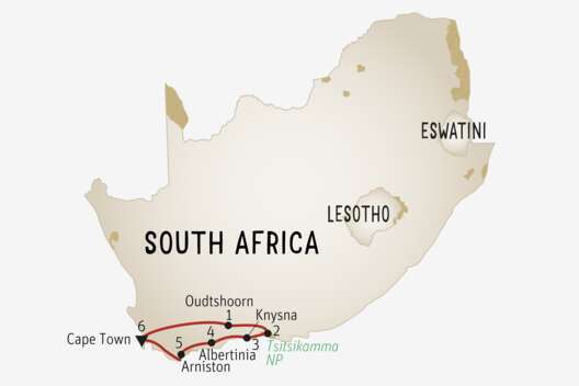 Die Garden Route Region führt am Atlantik und Indischen Ozean entlang, zwischen Hermanus und Port Elizabeth. Zu den Highlights zählen die Straussenfarmen und Tropfsteinhöhlen in Oudtshoorn, das Gebiet rund um Knysna sowie der Garden Route Nationalpark.