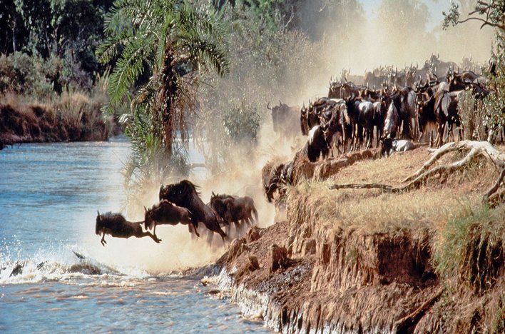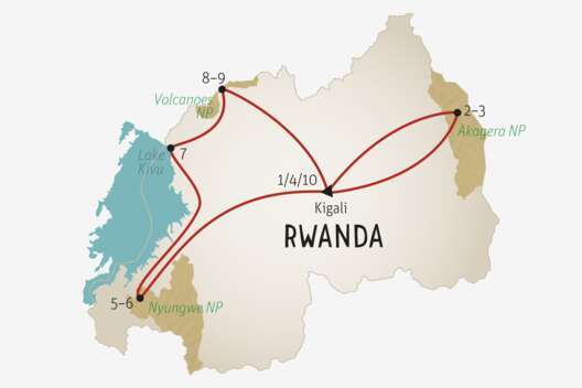 Wilde Gorillas leben ausschliesslich in den tropischen Regenwäldern Afrikas, wo Sie sie während eines spannenden Gorilla Trekkings beobachten können. Sie verlassen den Wald nur, wenn sie im offenen Grasland nach Nahrung suchen. Ein Tagesablauf von Berggorillas teilt sich ein in: morgens Nahrungsaufnahme, am späten Vormittag und Mittag Ruhe, nachmittags Nahrungsaufnahme und nachts wieder Ruhe. Jeden Abend bauen die Berggorillas ein neues Nest, auch wenn der Schlafplatz nur wenige Meter von dem der vorigen Nacht liegt. Jedes Tier errichtet seine eigene Schlafstelle, nur Säuglinge schlafen im Nest ihrer Mütter. Gorillas bilden gewöhnlich Gruppen - ein Silberrücken-Männchen lebt mit mehreren erwachsenen Weibchen und Jungtieren zusammen. Die Gruppengrösse schwankt stark, meist liegt sie zwischen 4 und 8 Mitgliedern.