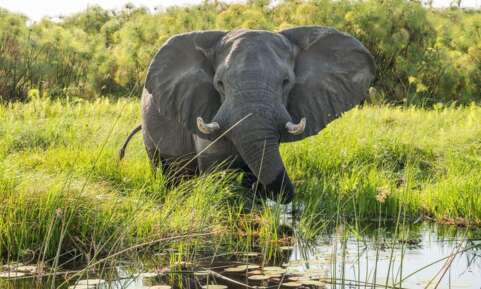 - Im traditionellen Mokoro durch die kleinen Kanäle des Okavango Deltas gleiten